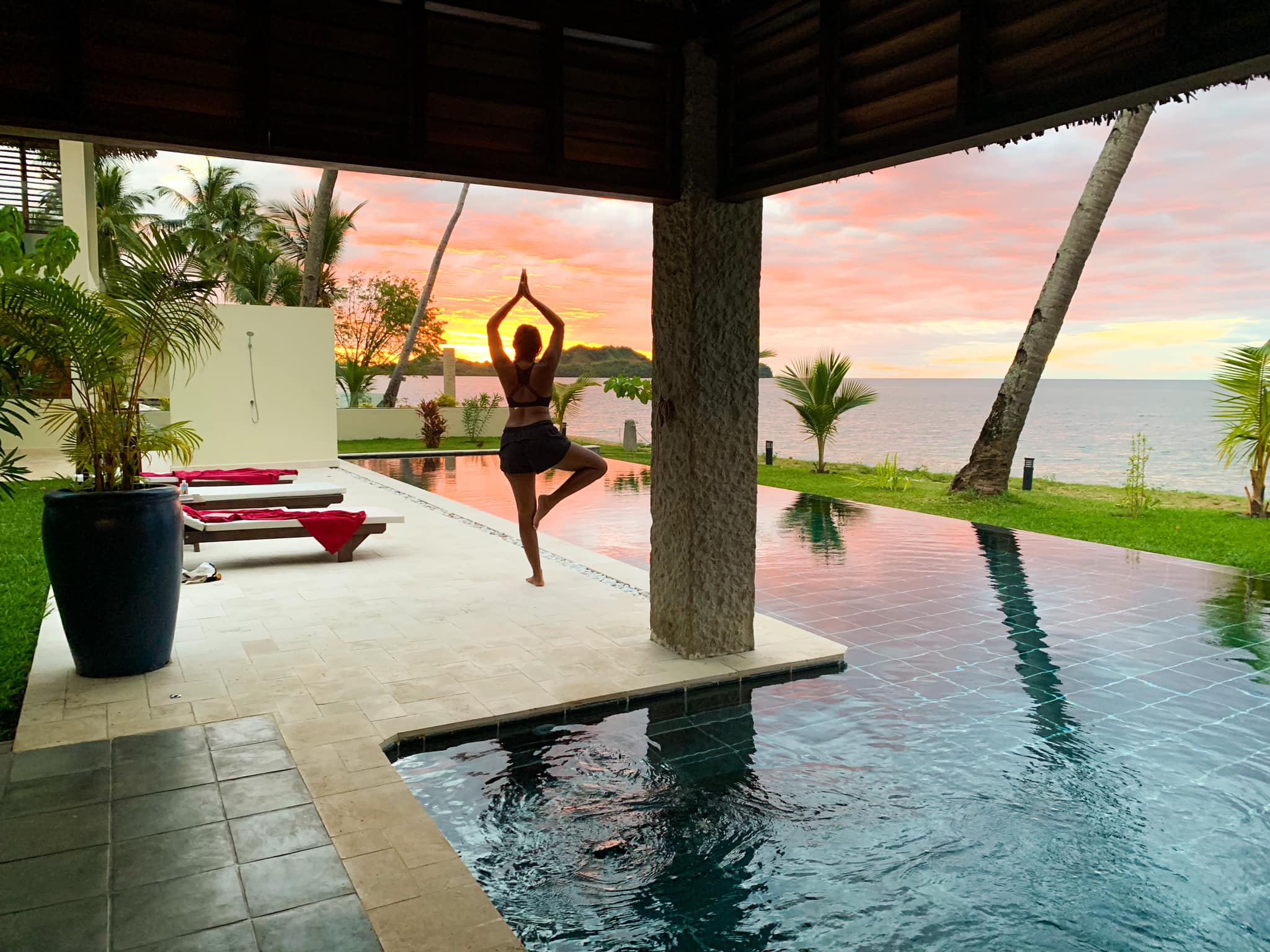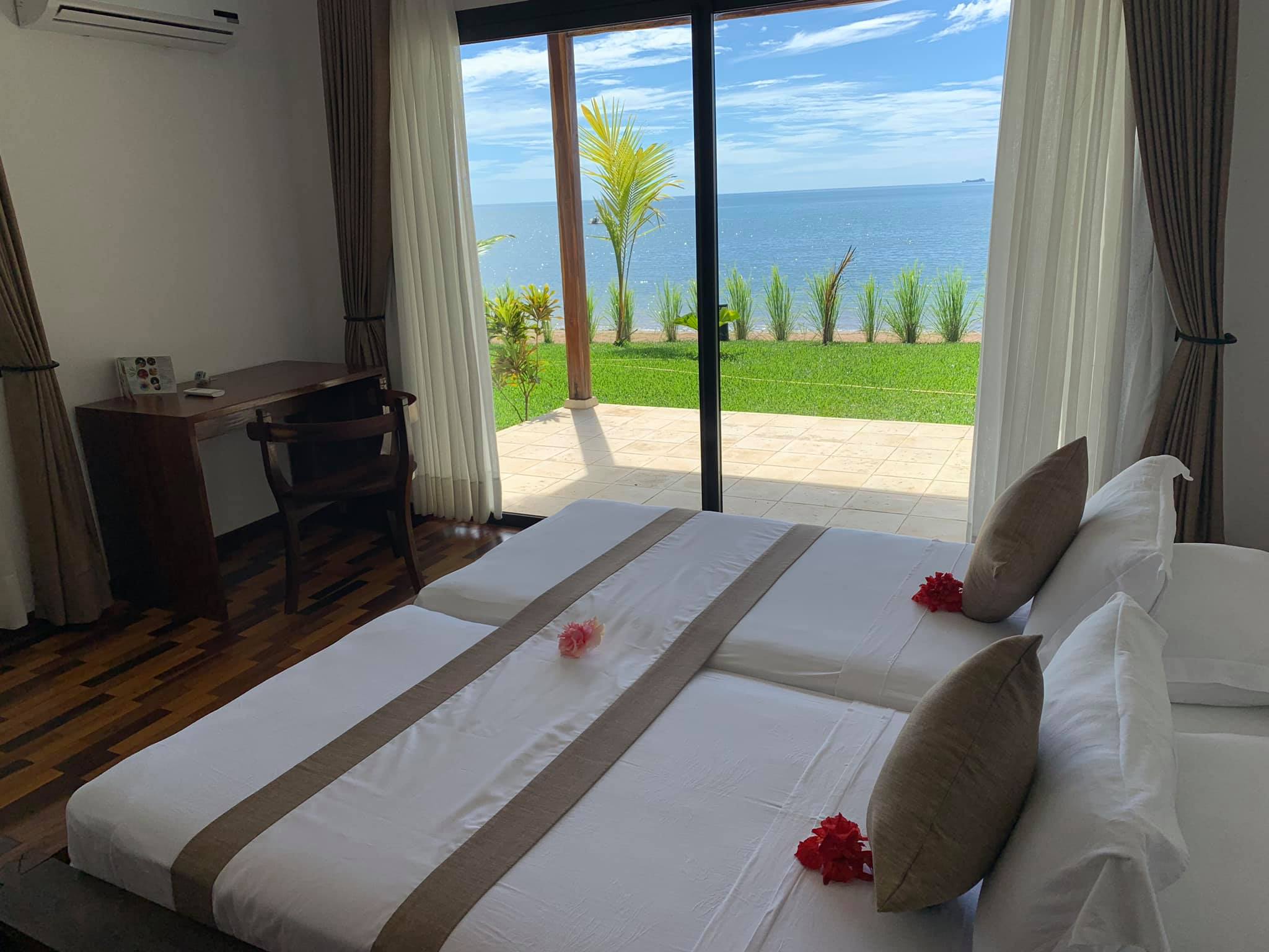 Les villas sont tout confort, pouvant accueillir de 2 à 10 personnes. Nous avons opté pour une magnifique villa pied avec accès direct sur la plage et piscine privée à débordement, le tout accompagné d’ une vue panoramique sur la mer.